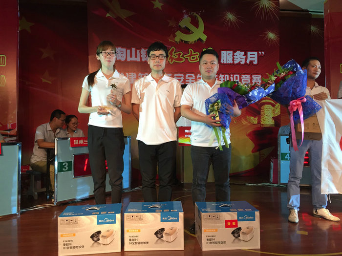 201578日晚,陶山鎮“紅七月·服務月”黨建知識及安全生產知識競賽決賽在陶山鎮中心小學演藝廳舉行。由我公司吳建文、張傅、蔡海清3名員工組成的參賽小組獲得決賽第二名。