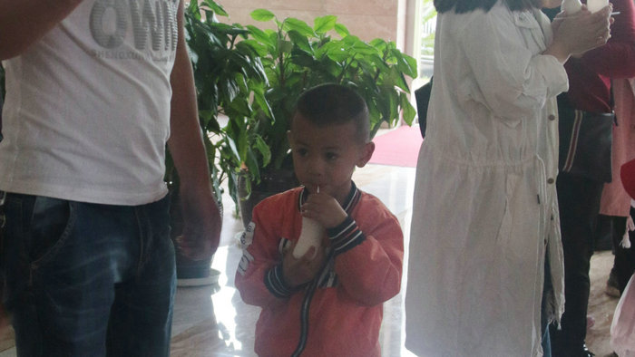 工作人員給大家帶來了百好早餐奶,小朋友們品嘗得津津有味。“甜甜的真好喝。”