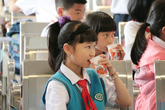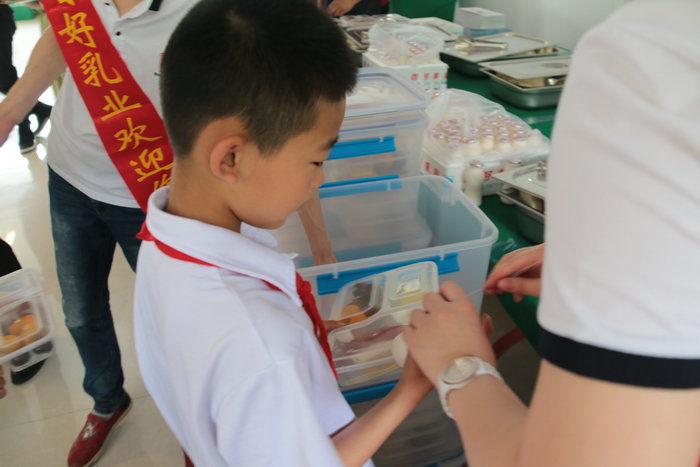 胡總向同學們和老師介紹我們的公司、牛奶和煉乳的相關(guān)知識。