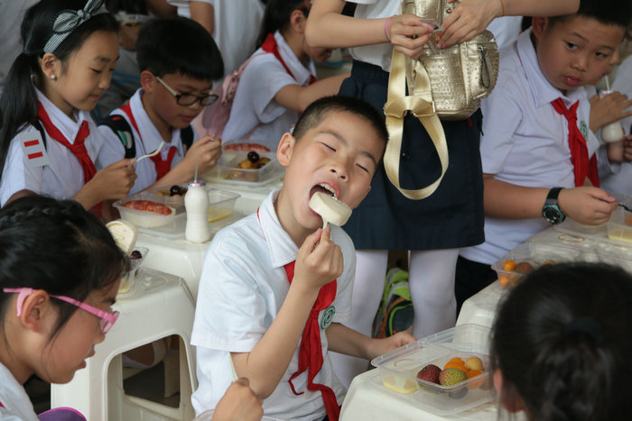 冰激凌做好啦!終于可以吃啦!一位同學說這是他今天最大的期待了。
