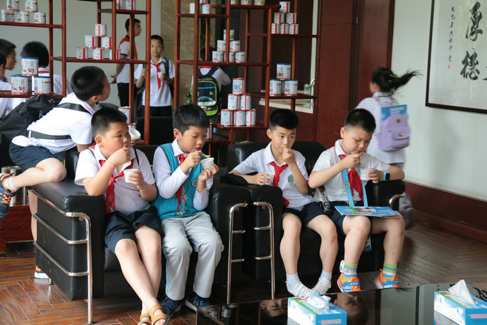 下午,同學們?nèi)ドa(chǎn)車間參觀,認真地聽蘇總介紹機器設(shè)備和煉乳生產(chǎn)的知識。