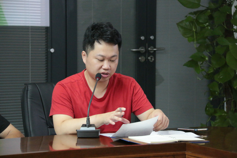 生產部車間質量管理助理吳建文針對車間生產工藝參數、勞動紀律和現場衛生三個方面進行知識講解,并通報了點檢工作情況。