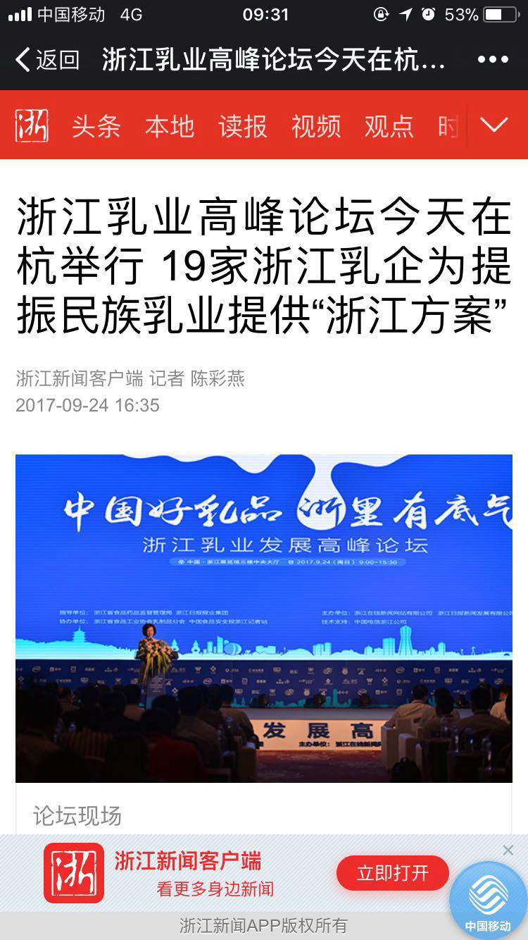 9月24日,“中國(guó)好乳品 浙里有底氣”——浙江乳業(yè)發(fā)展高峰論壇在杭州的浙江展覽館舉行。在以“乳制品企業(yè)的創(chuàng)新發(fā)展之路”為主題的圓桌會(huì)議上,我公司總經(jīng)理王仲達(dá)應(yīng)邀發(fā)言。浙江在線作如下報(bào)道。