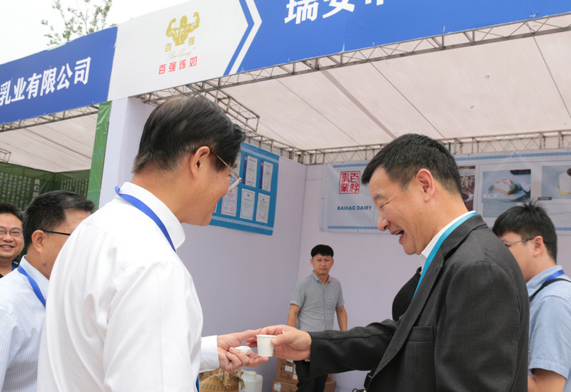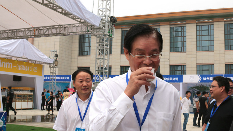 展示期間,浙江省食品藥品監(jiān)督管理局局長朱志泉等領導來到我公司的展位。在品嘗了奶茶后,向王總贊美道:這還是兒時記憶里的味道。