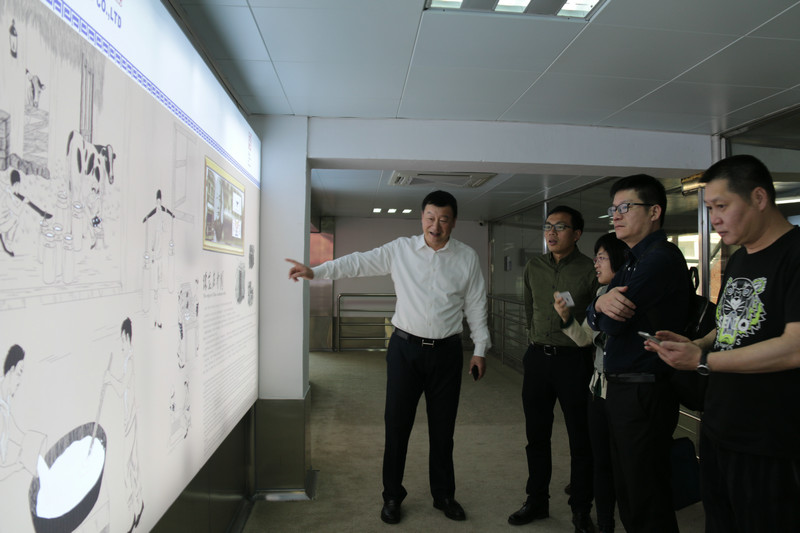 在參觀走廊,王總見畜牧局領導被墻上的圖片所吸引,便向他們講起了煉乳的起源和中國煉乳發展的故事。