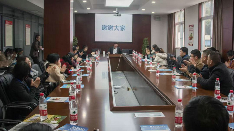 在中型會議室,王總對老師們的到來表示歡迎,并介紹了企業(yè)發(fā)展的歷史、管理體系和厚德載物自強不息的企業(yè)文化。