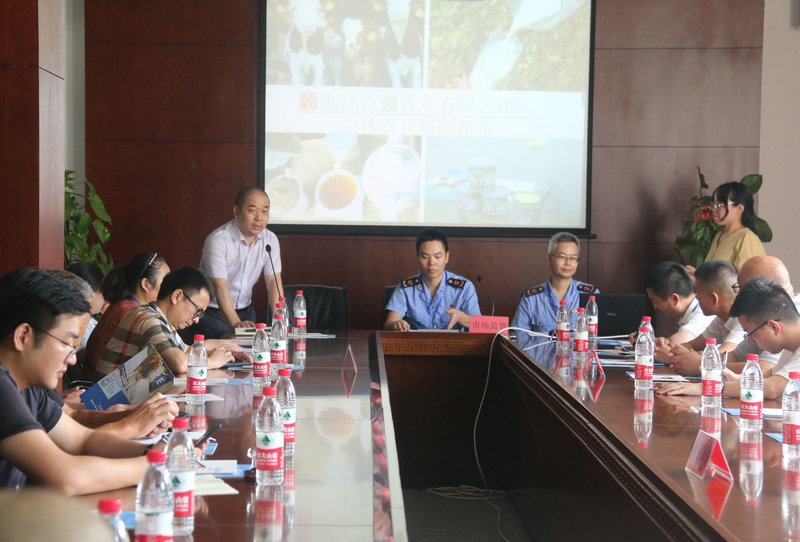 隨后召開會議,會議由市場監(jiān)督管理局陶山所副所長朱禮主持。百強乳業(yè)生產(chǎn)副總蘇曙光代表公司在會上作了《食品安全主體責任履職報告》,從企業(yè)運行機制、管理模式、質(zhì)量管控、售后服務(wù)、節(jié)能環(huán)保、企業(yè)文化等方面介紹了公司履行食品安全主體責任的情況