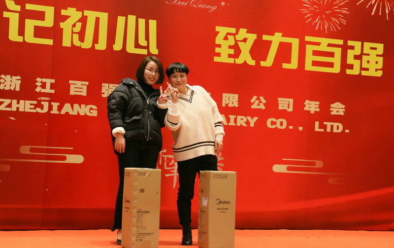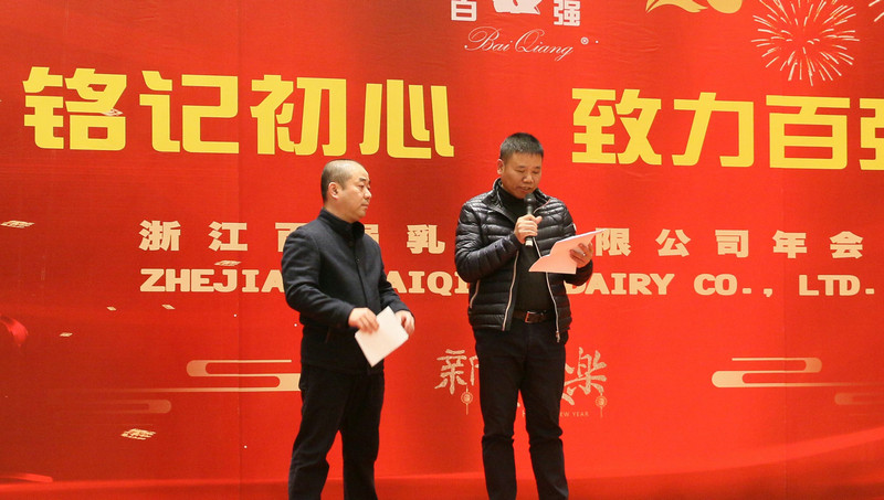 2020年1月20日,浙江百強乳業(yè)有限公司在瑞安葡萄園宴會中心銀桂廳召開年會。全體員工歡聚一堂,回顧2019年取得的成績,展望2020年愿景。現(xiàn)場洋溢著濃濃的喜悅、團結、熱鬧氣氛。