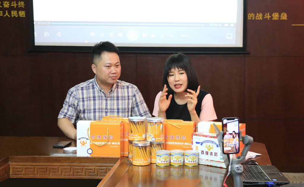 主播們介紹了百強公司發展歷程、煉乳的發展歷史、先進生產工藝生產及其優良品質。推薦了當前最暢銷百強條裝煉奶、百強加糖煉乳等產品。活動期間還穿插抽獎活動,粉絲也熱烈回應,紛紛留言煉奶各種的“神仙吃法”,及下單購買,直播間一番熱鬧景象。