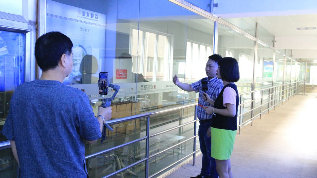 當天下午3點30分,直播活動正式開始,直播間粉絲們觀看百強宣傳片,網絡主播樂樂和車間主任吳建文通過鏡頭向網友們展示敬畏廊、誠信廊、精細廊、業脈廊,帶領網友們參觀百強園林式廠區.