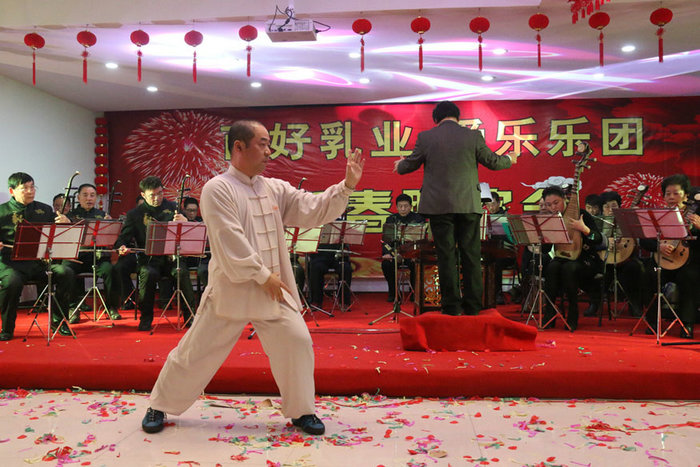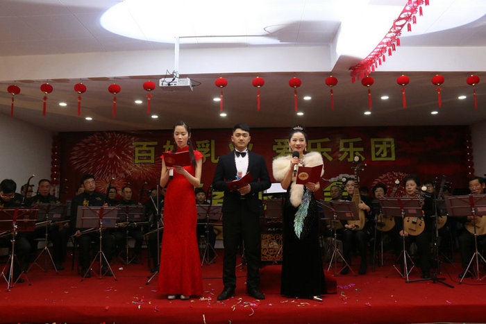 新春聯歡會由愛樂樂團的王珍和百好乳業公司的王廣強、蔡海清共同主持。愛樂樂團團長陳錫堅先生指揮著樂團以《春節序曲》拉開了聯歡會的序幕。王總演唱的《最美的歌唱給媽媽》,副總經理蘇曙光表演的《太極拳》,公司員工肖林琴演唱的《十五的月亮》,吳建文、張傅、林向京、鄒美秀等4人表演的瑞安方言三句半《同舟共濟奔目標》,王廣強演講的《百好乳業,幸福人生》等節目,展示了公司的企業文化,博得了現場觀眾的陣陣喝彩。愛樂樂團帶來的女聲獨唱《望鄉》、《鄉愁》、《我愛你,中國》、男聲獨唱《我為祖國獻石油》等節目也精彩紛呈、高潮迭起。