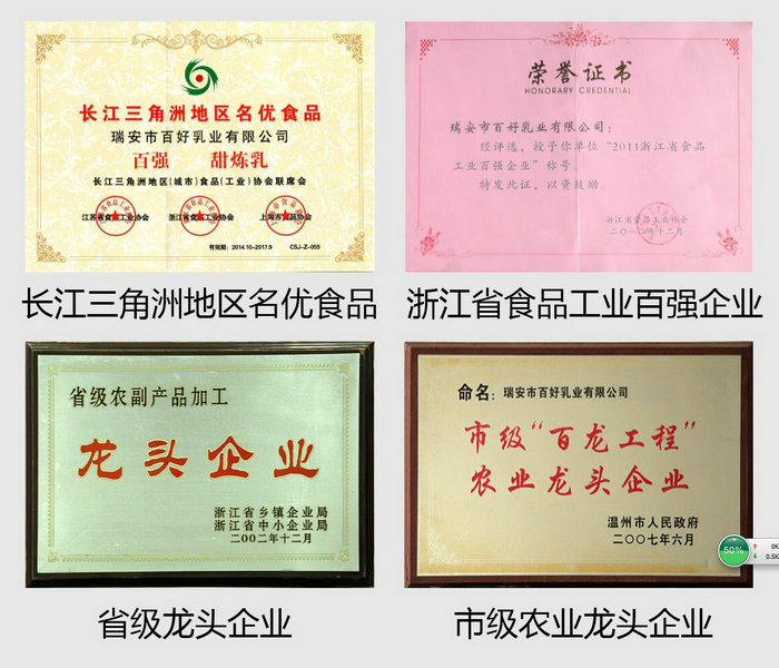 二十年來,公司獲得了“中華老字號”稱號,2008年獲“浙江老字號”稱號,2004年獲中國原產地證準用證書,2002年獲浙江省農副產品深加工龍頭企業,2009年獲浙江省工商企業信用AAA級“守合同重信用”單位,2007年獲溫州市級“百龍工程”農業龍頭企業,2012年起連續多年獲溫州市食品工業五十強企業,1998年至2005年連續被瑞安市政府評為星級企業,2013年榮獲2012年度五十強農業龍頭企業、瑞安市第三屆勞動關系和諧企業、2012年度誠信民營企業等榮譽。尤其是2015、2016年,獲得了浙江省省級骨干農業龍頭企業、浙江省綠色企業、浙江省創新型示范中小企業、浙江省優秀工業產品、浙江省著名商標(百強)、溫州市勞動關系和諧企業。