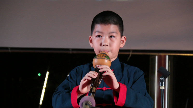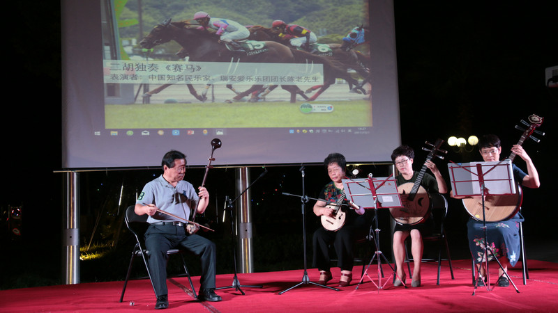 如果僅僅是嘴巴的享受豈能過癮,眼睛和耳朵可不能閑著。一場文藝節(jié)目也同時上演。公司邀請了中國知名民樂家、瑞安愛樂樂團團長陳錫堅老先生為大家演奏了二胡名曲《賽馬》,在氣勢磅礴的樂曲聲結束后,大家報以駿馬奔騰般的掌聲。陳老先生的孫子陳勉之也給大家?guī)砹艘欢尉实暮J絲獨奏《美麗的金孔雀》。