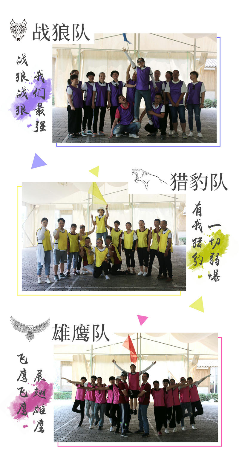 活動開始,大家在教練的隨機(jī)分配下組成了3支小隊(duì),分別是嗷嗚嗚的“戰(zhàn)狼隊(duì)”、吼吼吼的“獵豹隊(duì)”和“嚶嚶嚶”的“雄鷹隊(duì)”,這三只斗志高昂的飛禽猛獸還即興創(chuàng)作了個性鮮明的團(tuán)隊(duì)口號和團(tuán)隊(duì)LOGO。