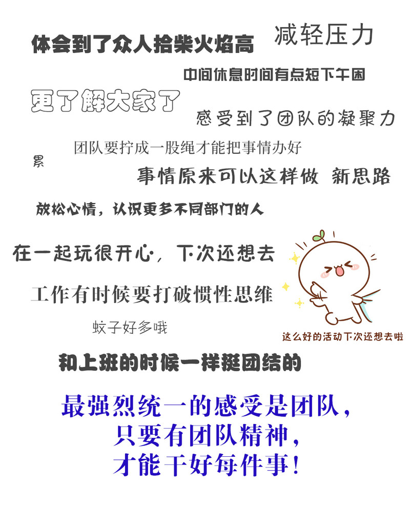活動后的次日,公司召開座談會,討論這次活動的效果。與會員工紛紛說出了自己的感悟和吐槽: