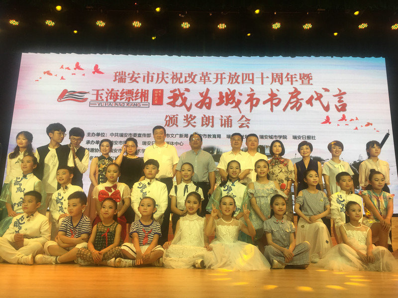 7月6日晚,“百強(qiáng)乳業(yè)杯·我為城市書房代言”頒獎(jiǎng)朗誦會(huì)在瑞安城市學(xué)院舉行。公司總經(jīng)理王仲達(dá)作為特邀嘉賓參加此次朗誦會(huì),并為獲獎(jiǎng)選手頒獎(jiǎng)。公司部分員工也在現(xiàn)場(chǎng)觀看了此次朗誦會(huì),欣賞了一個(gè)個(gè)師生們表演的精彩節(jié)目。朗誦會(huì)結(jié)束后,王總和全體表演者合影留念。