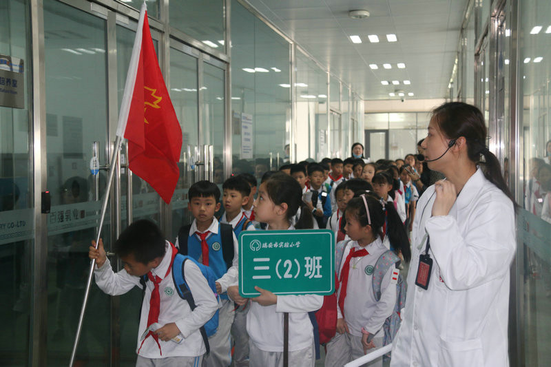 2019年5月17日上午,瑞安市實驗小學270余名師生來到浙江百強乳業有限公司,在公司的“浙江省中小學質量教育社會實踐基地”開展“學工”活動。