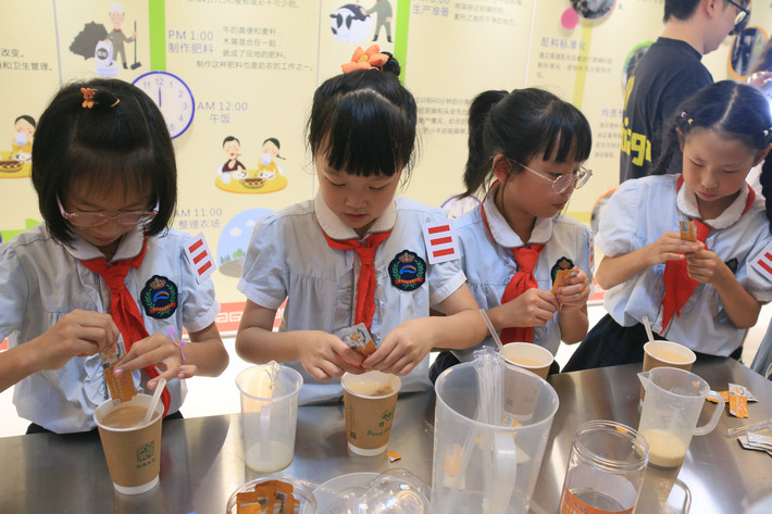 在工作人員的指導下,制作一杯自己喜歡的奶茶