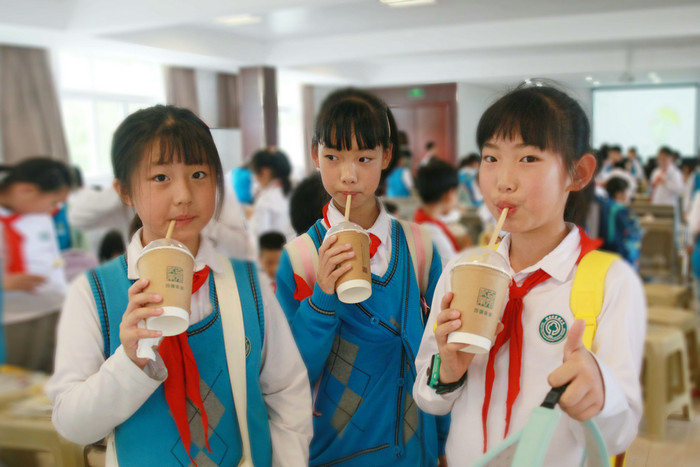 公司為師生準備了面包、煉乳、布丁、水果及百強煉乳調制的奶茶,同學們表示很贊