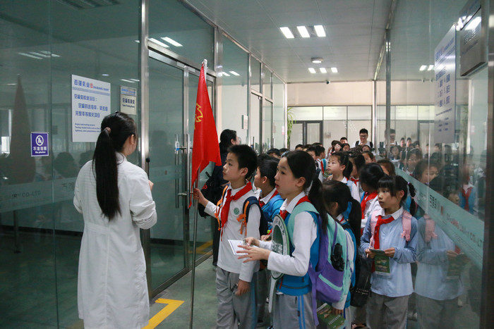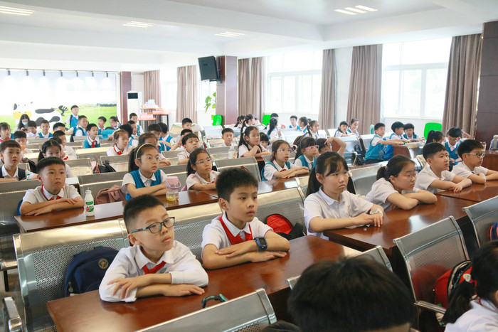 在三樓多功能廳,講解員帶領同學們了解了煉乳發展歷史淵源,百強乳業企業文化、管理模式;介紹了牛奶和煉乳產品品類;剖析了乳制品之間的乳蛋白含量差異;科普了飲用牛奶的諸多益處及應該注意的食品安全問題, 并現場演示煉乳檢測酸度的小實驗。